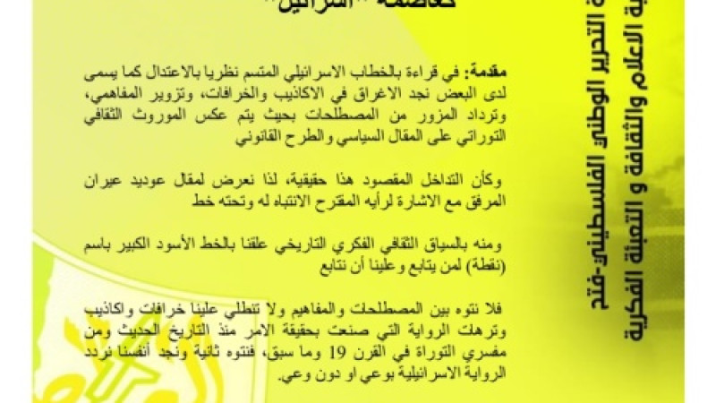 (تكرار لمفاهيم لم تولد الا بهذا العصر منذ القرن19 فصاعدا، ولا يوجد لها حقيقة تاريخية أو علمية ألا وهي "شعب" يهودي،! او "وطن قومي"! أو "أرض" "اسرائيل"! والحقيقة ان هناك اتباع ديانة اليهودية، وهم من قبائل عدة من بينها كانت قبيلة بني اسرائيل العربية المنقرضة، ثم قوميات متعددة، ولم تكن هناك "أرض" أو "وطن" مسجلة باسمهم-أي القبيلة او أتباع الديانة- للأبد في أي مكان بالعالم-نقطة)