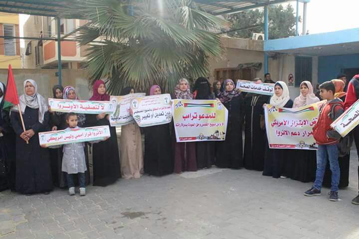 مفوضية الإعلام- غزة: نظمت اللجنة الشعبية للاجئين في مخيم دير البلح وقفة احتجاجية أمام مقر وكالة الغوث رفضا لقرارات الإدارة الأمريكية التي تهدف إلى تصفية قضية اللاجئين من خلال تجميد المساعدات المالية التي تقدمها سنويا لخزينة الأونروا