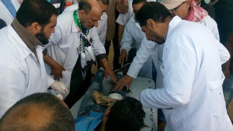 ودارت مواجهات عنيفة منذ ساعات الصباح في عدة نقاط تماس مع الاحتلال على اقرب نقطة من السياج الحدودي الفاصل، بوجود تعزيزات عسكرية اسرائيلية واطلاق رصاص حي تجاه المدنيين الذين خرجوا لاحياء ذكرى يوم الارض بمسيرات العودة.