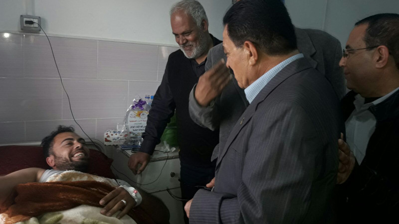 مفوضية الإعلام-غزة: قام وفد من اللجنة الشعبية للاجئين بخان يونس مكون من رئيس اللجنة مازن ابو زيد وامين سر اللجنة عدنان العصار وأعضاء اللجنة رأفت طومان ، عرفات الفقعاوى ، انور الخطيب ، وائل ابو نمر، محمد الشريف ، مازن النبريص ، بزيارة جرحى مسيرة العودة في مستشفى ناصر واطمأن الوفد الزائر على كل الجرحى الذين مازالوا يتلقون العلاج بالمستشفى .