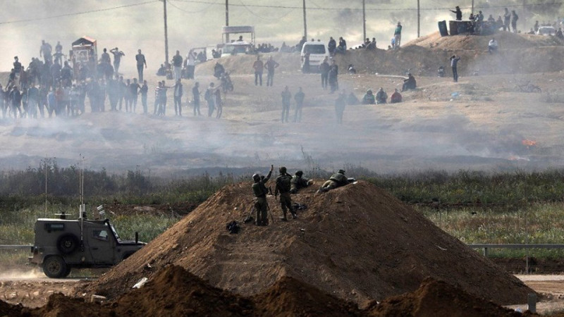 وكان الآلاف من المواطنين، زحفوا منذ ساعات الصباح، باتجاه المناطق الحدودية على مقربة من السياج الفاصل، للمشاركة في مسيرات شعبية سلمية تحت شعار "جمعة الكاوتشوك"، في إطار إحياء ذكرى يوم الأرض والعودة إلى الديار، التي هجروا منها على يد الاحتلال الإسرائيلي.