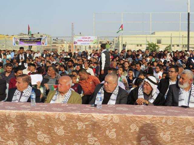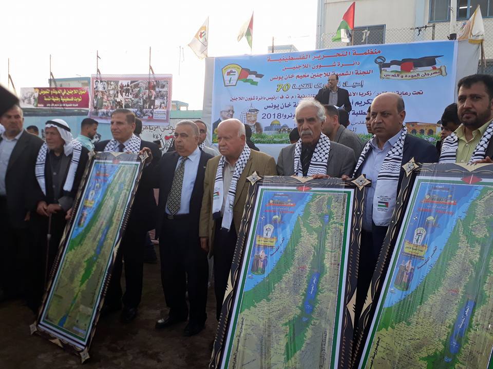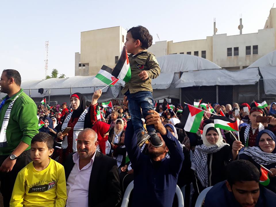 مفوضية الإعلام-غزة: نظمت اللجنة الشعبية للاجئين مخيم خان يونس مهرجان تحت عنوان "العودة و القدس" إعلانا عن بدء فعاليات التذكير بذكرى النكبة 70 لتكريم أهالي شهداء مسيرة العودة الذين سقطوا دفاعاً عن الأرض و الهوية و تكريم الطلبة المتفوقين في مدارس وكالة الغوث و البالغ عددهم 1777 طالب و طالبة.