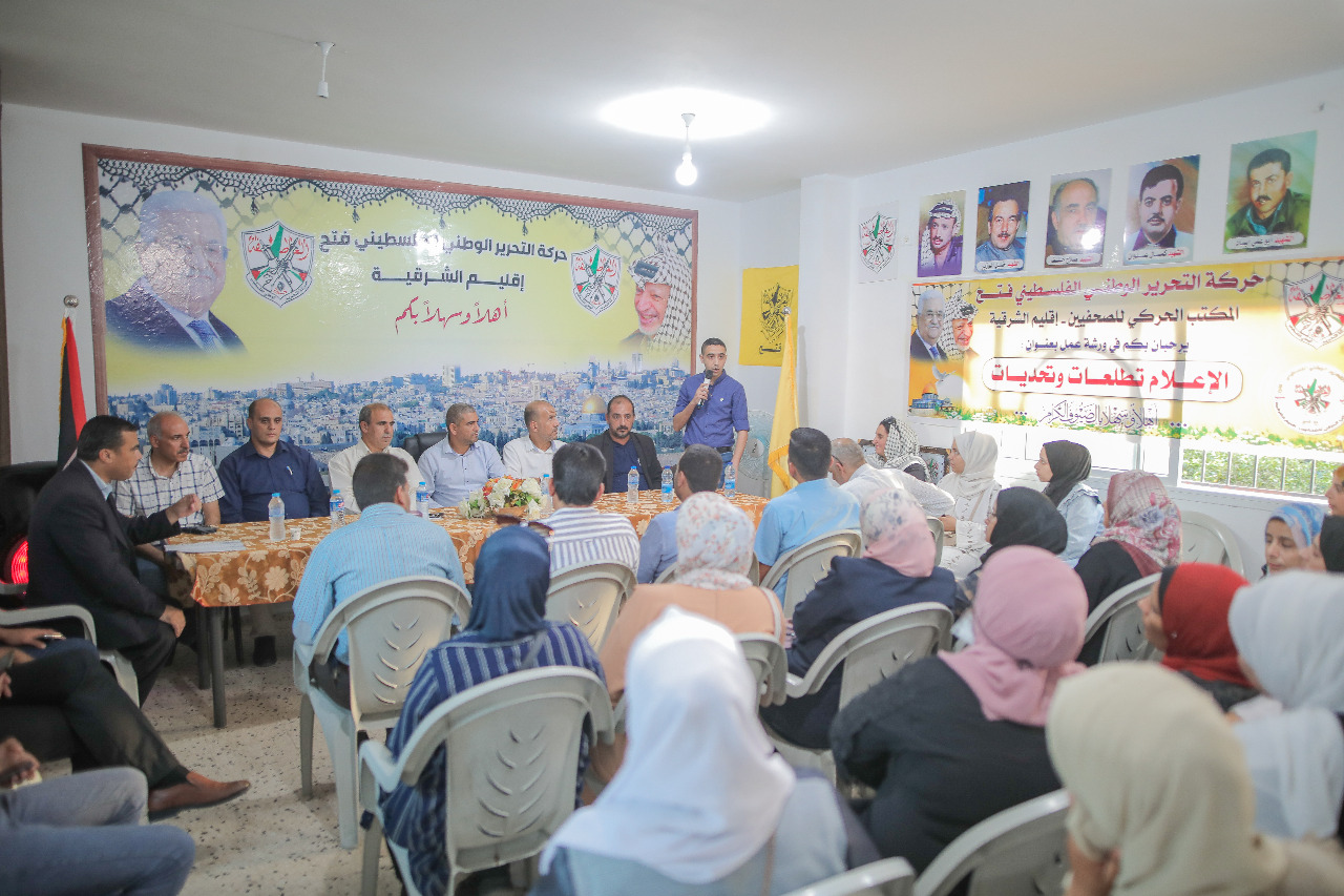 خانيونس - مفوضية الإعلام: نظم المكتب الحركي للصحفيين بإقليم الشرقية بمحافظة خان يونس مساء السبت ، ورشة حول "الاعلام تحديات وتطلعات" ، وذلك بمشاركة الاخ ابراهيم ابو علي امين سر حركة فتح بإقليم الشرقية ، د. تحسين الاسطل نائب نقيب الصحفيين ، د.عاهد فروانة امين سر المكتب الحركي المركزي للصحفيين في الاقاليم الجنوبية ، واعضاء قيادة إقليم الشرقية ، وامين سر المكتب الحركي للصحفيين بإقليم الشرقية أ.منيب ابو سعادة واعضاء المكتب الحركي الفرعي بالاقليم ولفيف من الصحفيين والصحفيات والكوادر الاعلامية في باقليم الشرقية .