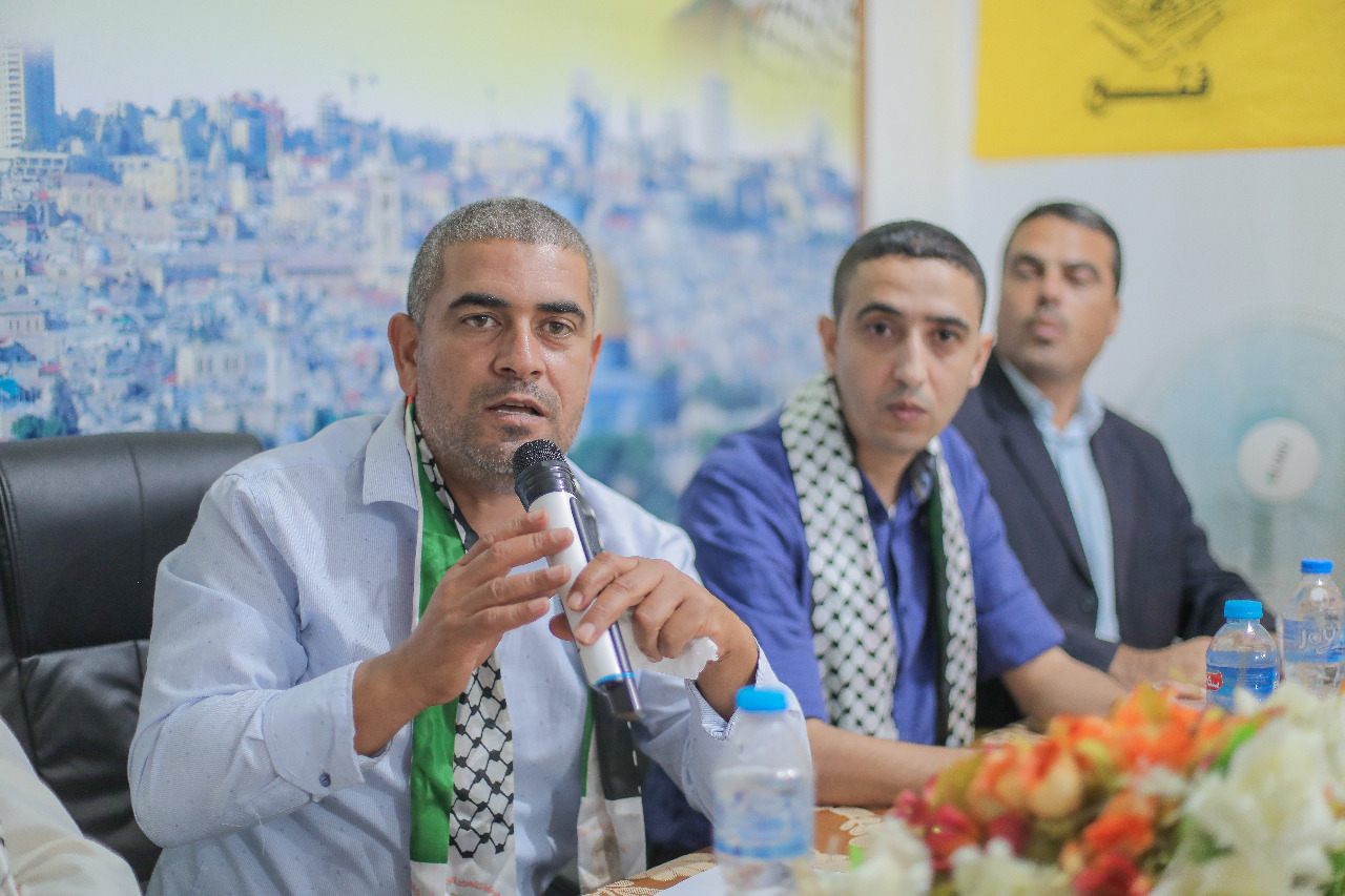 ومن ثم القى امين سر حركة فتح باقليم الشرقية الاسير المحرر ابراهيم ابو علي، كلمة حركة فتح والتي اكد فيها على حرص حركة فتح وقيادة الاقليم على الاهتمام بالصحفيين وتقديم كافة الامكانيات امام المكتب الحركي للصحفيين لتلبية احتياجات الصحفيين .