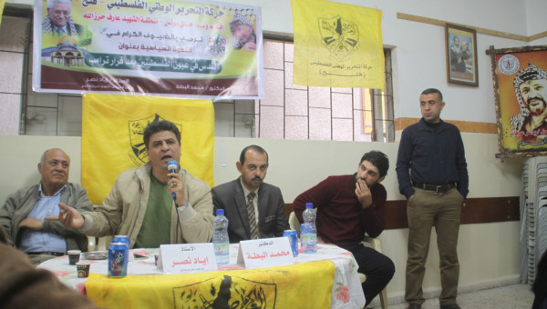 مفوضية الإعلام- خانيونس: نظم اقليم وسط خانيونس ومنطقة الشهيد عارف حرزالله ندوة سياسية بعنوان" القدس في عيون الفلسطينيين بعد قرار ترامب" ، والتي القاها عضو المجلس الثوري لحركة فتح ومسئول الإعلام في الهيئة القيادية الاخ إياد نصر.