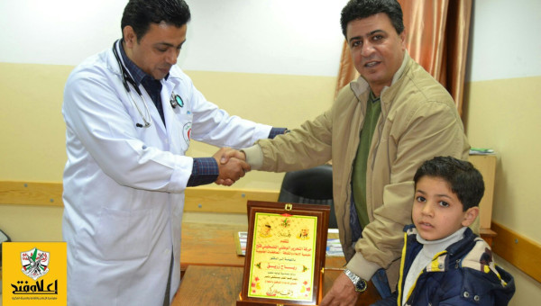 مفوضية الإعلام- خانيونس: كرمت حركة التحرير الوطني الفلسطيني، الدكتور رباح زريق، رئيس قسم القلب في مستشفى "ناصر" في محافظة خانيونس، بعد توليه مهام عمله، كما اجرت زيارة الطفل المريض أبن المناضل فيصل فياض،في المستشفى.