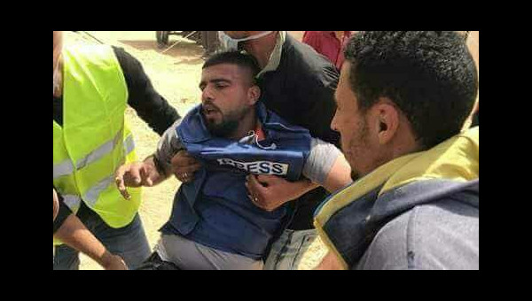 مفوضية الإعلام- غزة: اصيب اليوم الزميل الصحفي احمد ابو حسين من اذاعة صوت الشعب بجراح خطيرة نتيجة استهداف جنود الاحتلال الطواقم الصحفية العاملة على تغطية مسيرة العودة على طول الحدود شرق غزة .