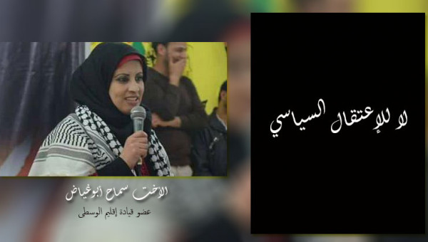 وأضاف ابوسيف:" إن سماح أبو غياض حاصلة على ليسانس لغة إنجليزية وهي شخصية مجتمعية بارزة في مخيم النصيرات حيث تعمل مديرة لمركز النشاط النسائي ومعروفة بمواقفها النضالية ونشاطاتها المجتمعية. وقال أبو سيف إن الاستمرار باعتقال أبو غياض وصمة عار في جبين أرباب الإنقسام والمدافعين عن تخومه والعاملين على إطالة عمره".