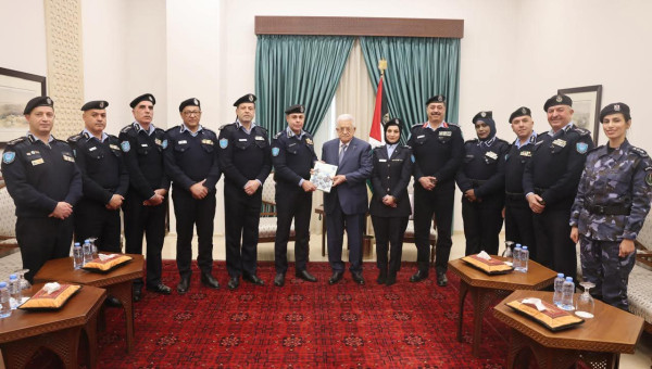 تسلّم رئيس دولة فلسطين محمود عباس، اليوم الاثنين، التقرير السنوي لجهاز الشرطة الفلسطينية لعام 2025، وذلك خلال استقباله المدير العام للشرطة الفلسطينية اللواء علام السقا، وقيادة الجهاز، في مقر الرئاسة بمدينة رام الله.